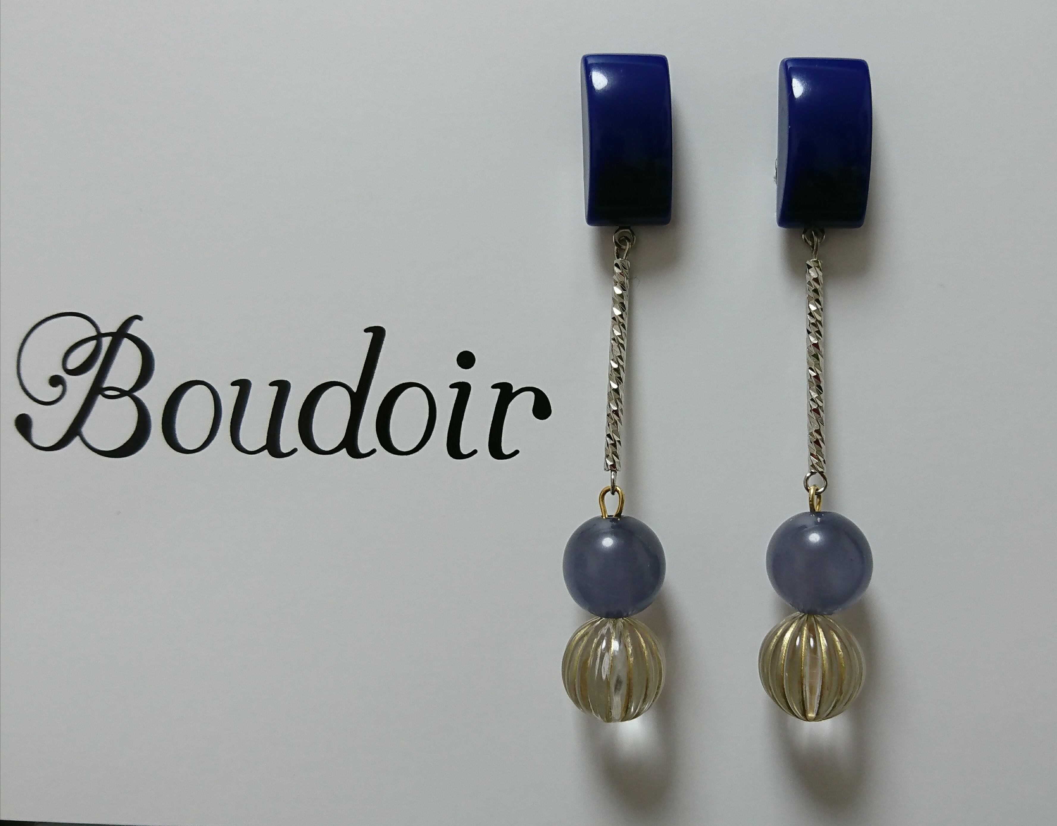 今期流行りのクリアパーツを使った、ロングタイプのイヤリングです。