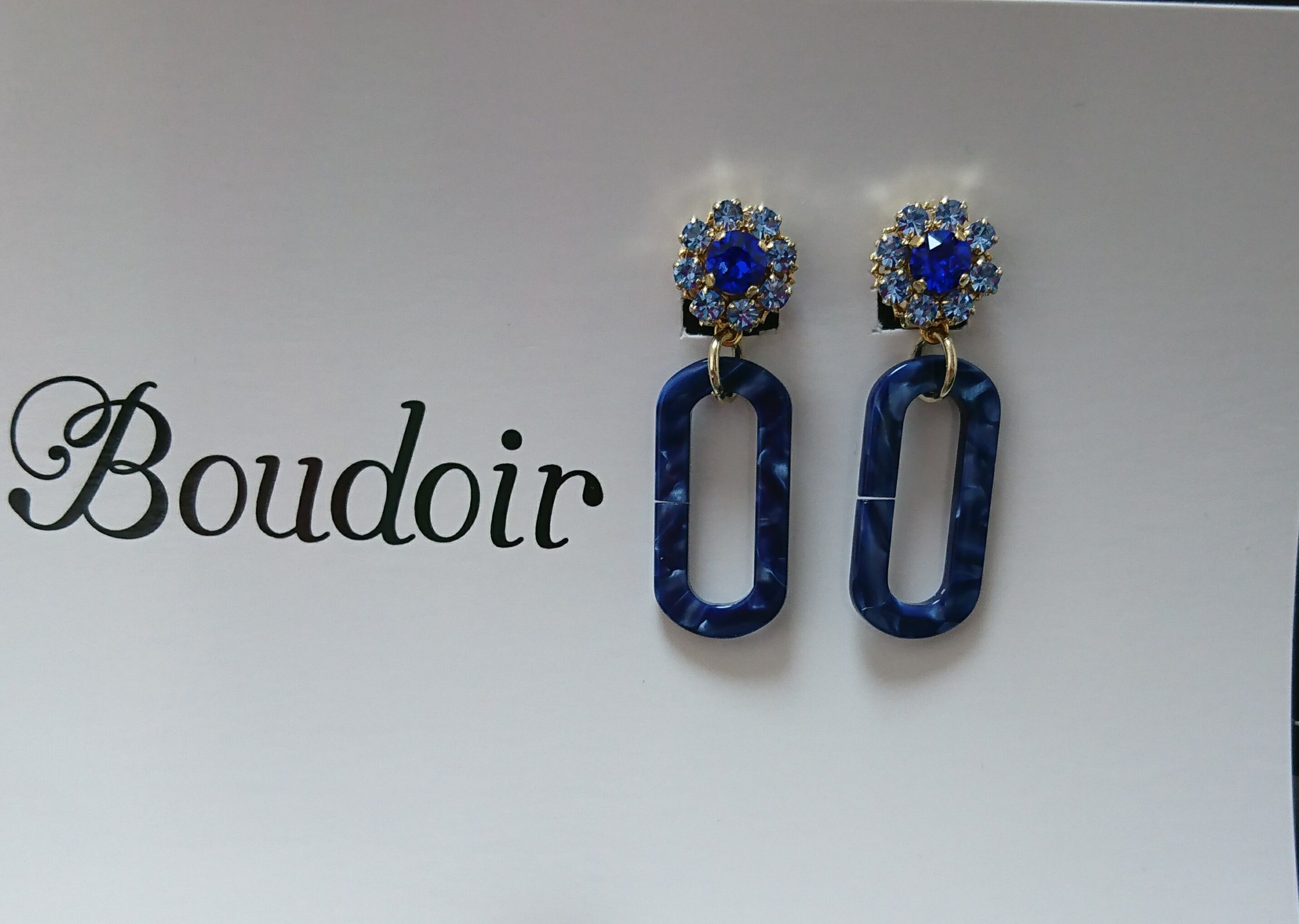 ブルー系ビジューイヤリング