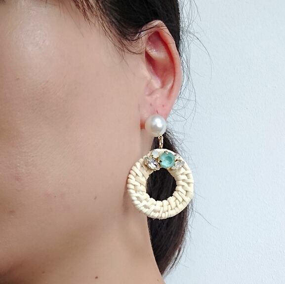 天然素材とビジューの組み合わせがおしゃれな夏ピアス