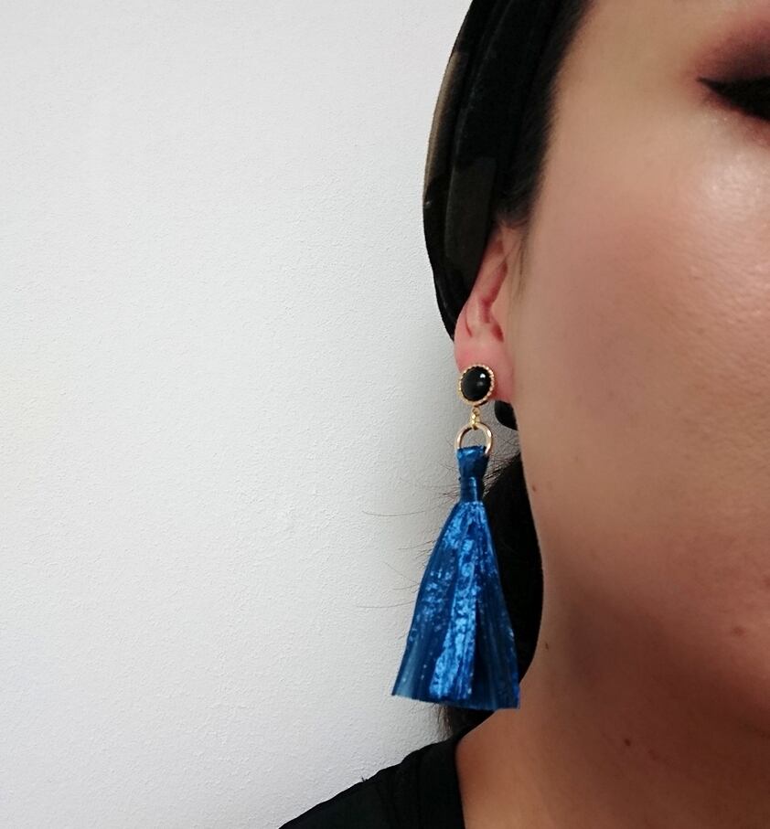 今期流行り素材を使ったアシンメトリーのタッセルピアス