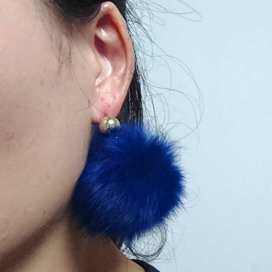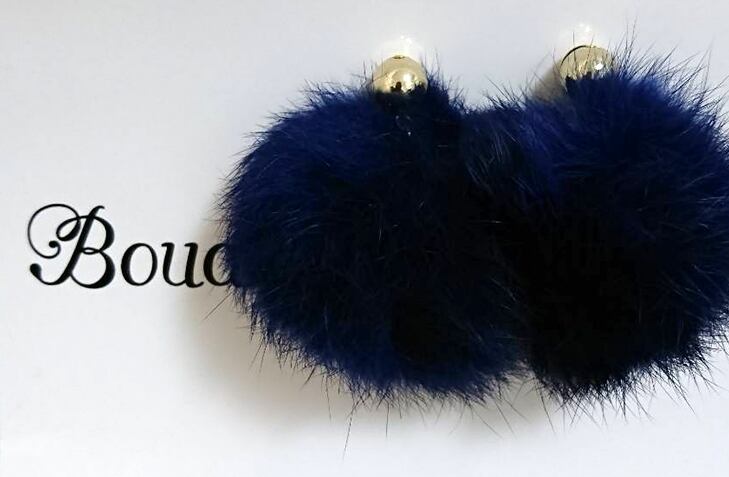 小顔効果抜群のモフモフのラビットファーイヤリングです