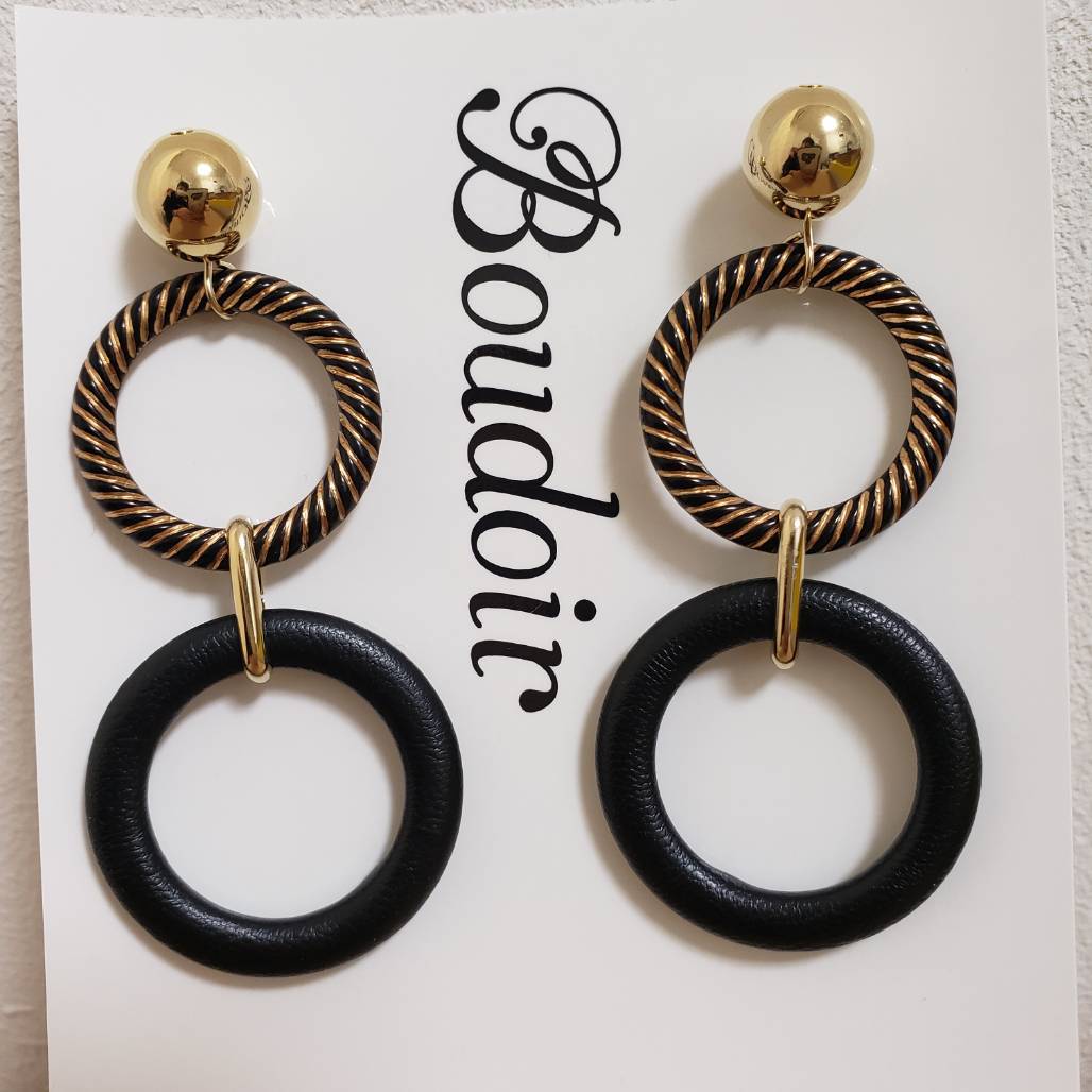 レザーフープデザインイヤリング