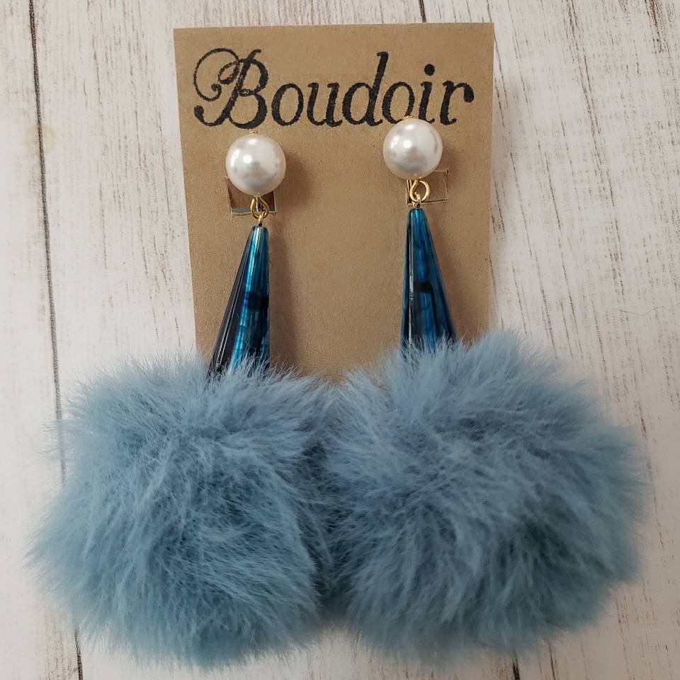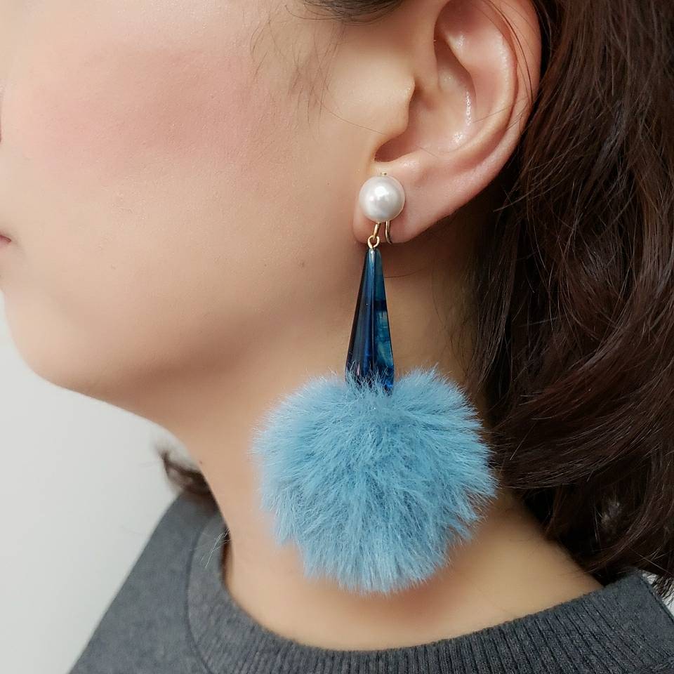 ライトブルーファーイヤリング