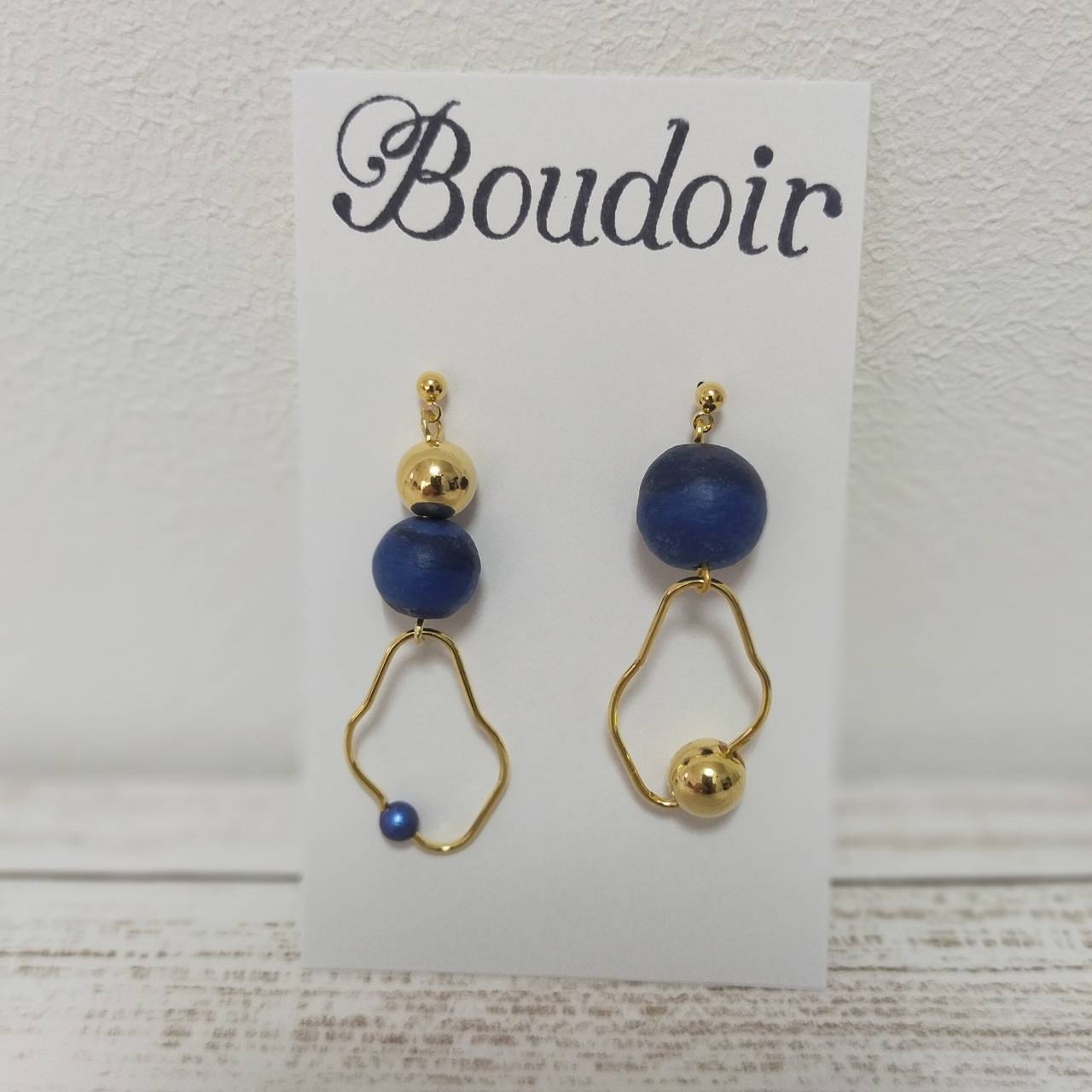 落ち着いたブルーのコットンパールとゴールドの組み合わせがオシャレ