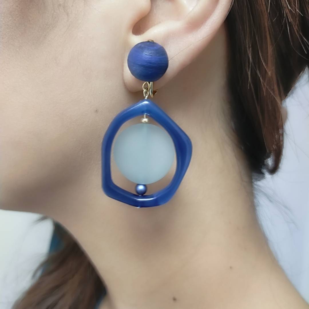 ブルーの異素材を組み合わせたアイテム