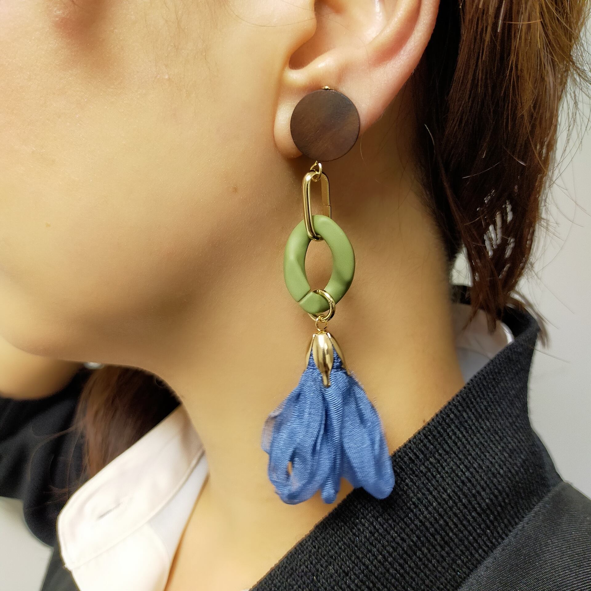 ウッドトップシフォンタッセルピアス