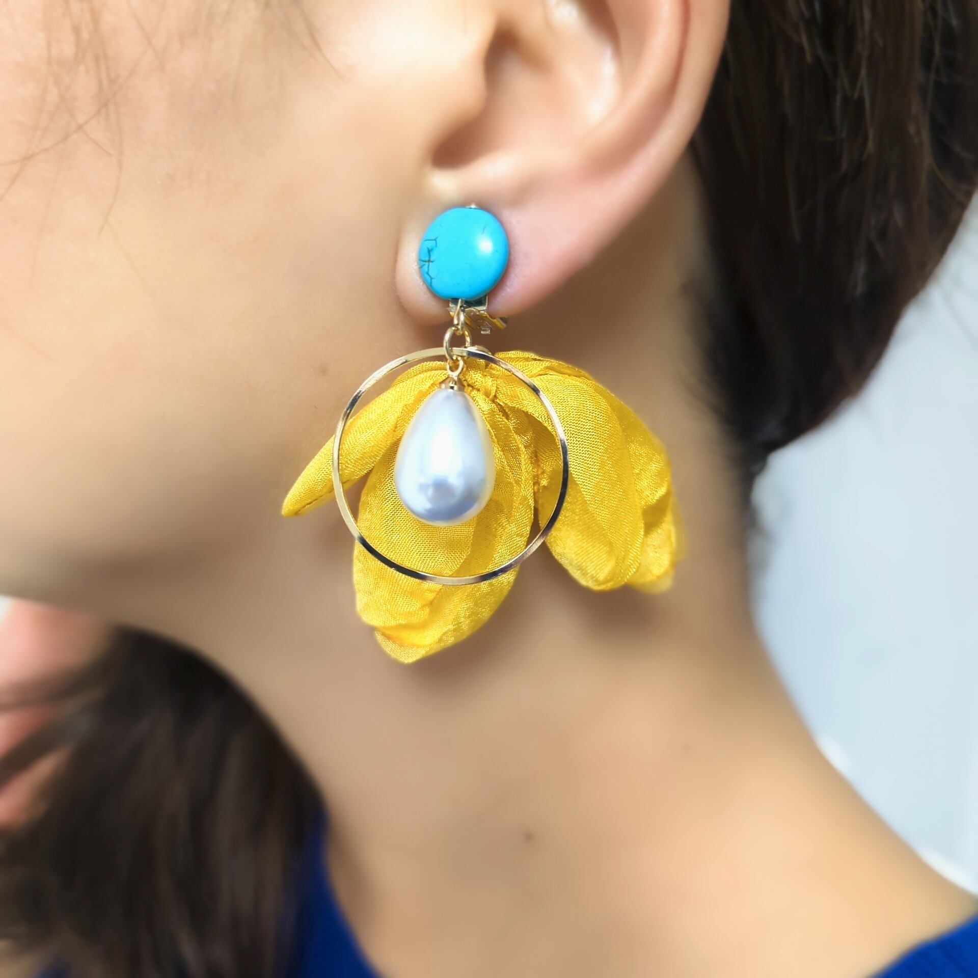 インパクトのあるカラー。軽くて使いやすいです。バネ式イヤリング